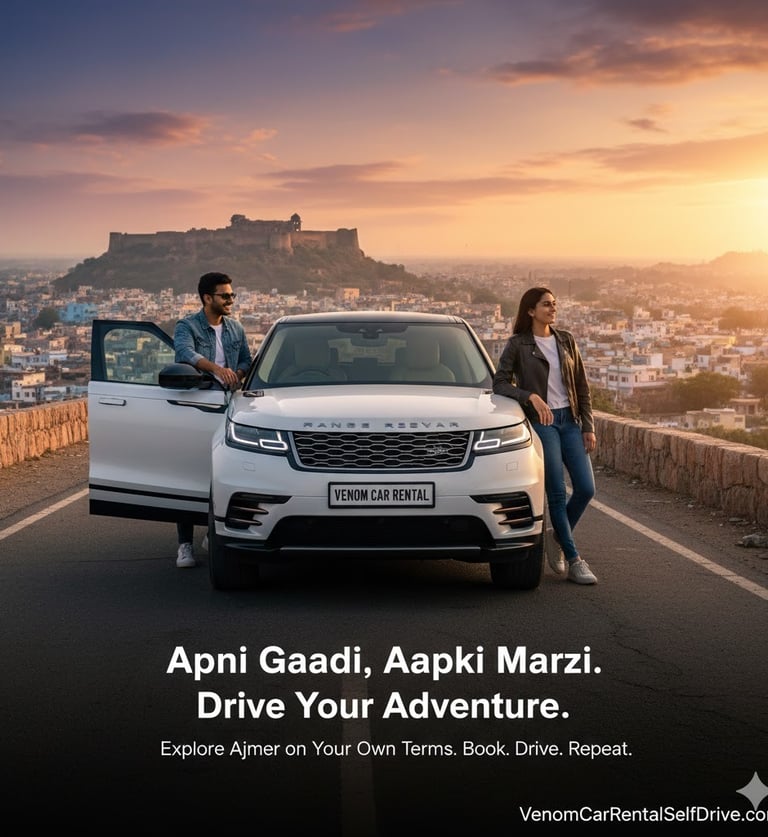 “Ajmer mein apni marzi se, apne time par – Venom ke saath self drive carrental ka full freedom.”hort
